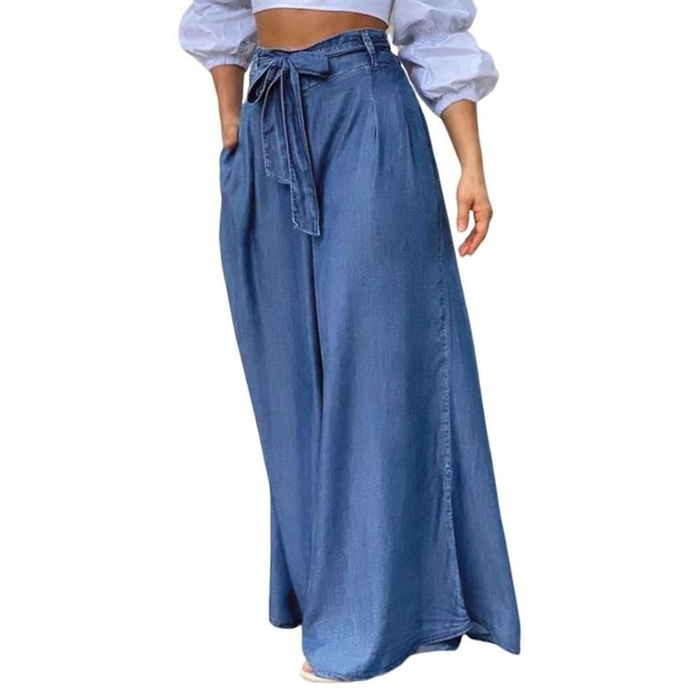 Very nice denim trousers with wide legs that ensure comfort for all-day wear.
