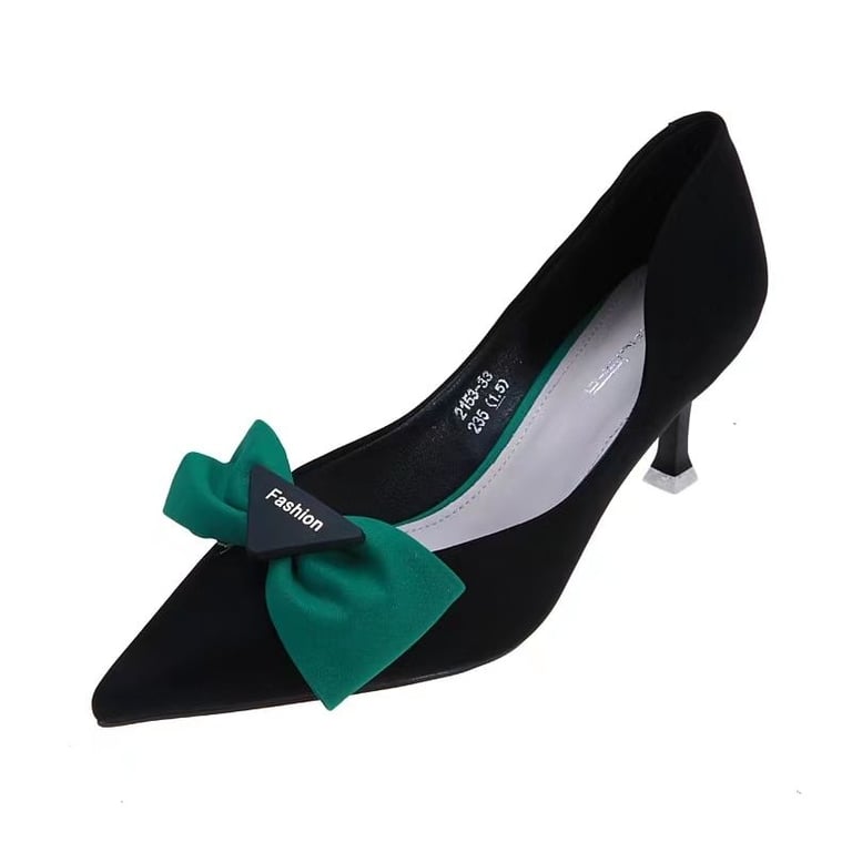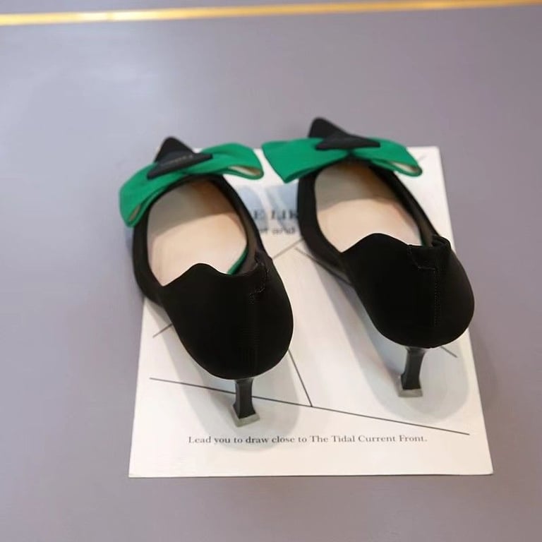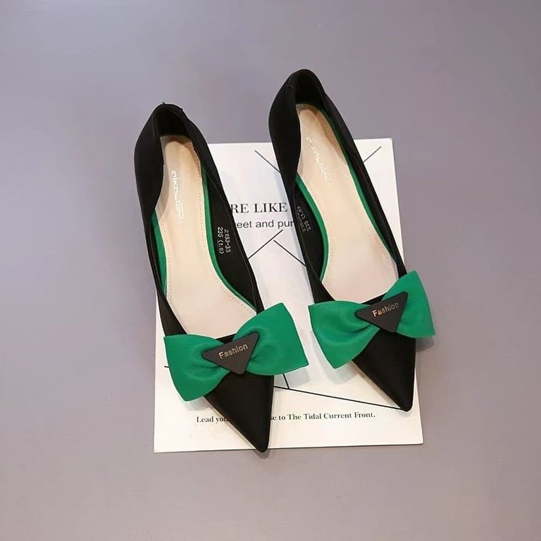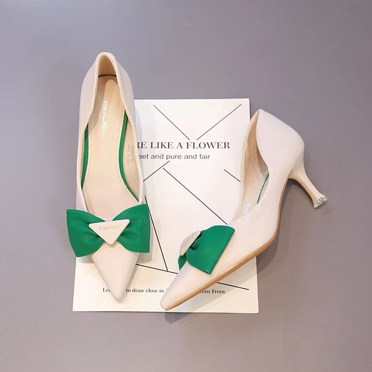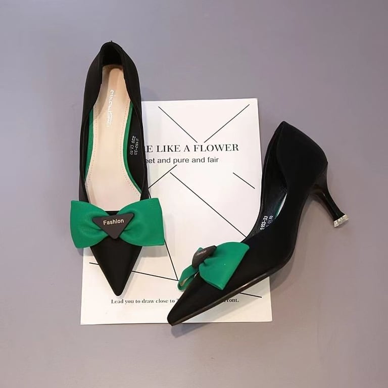 Beautiful pointed heels with stiletto heels and a stunning bow.