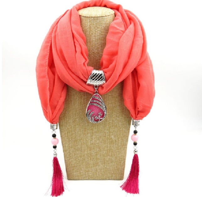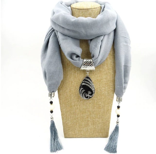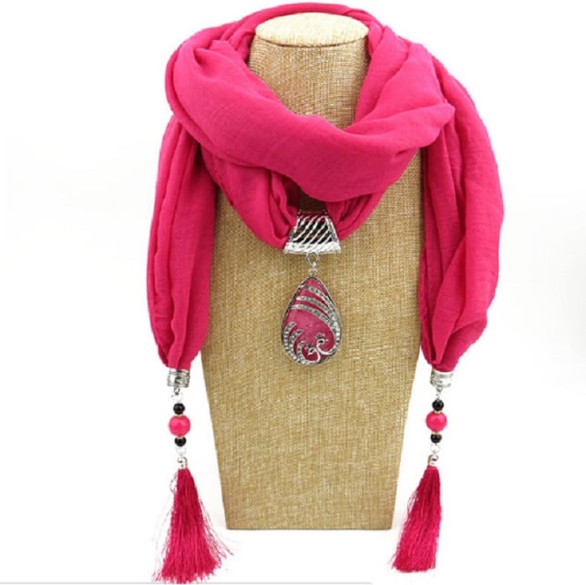 Ladies' luxury scarf with pendant – 9 colours