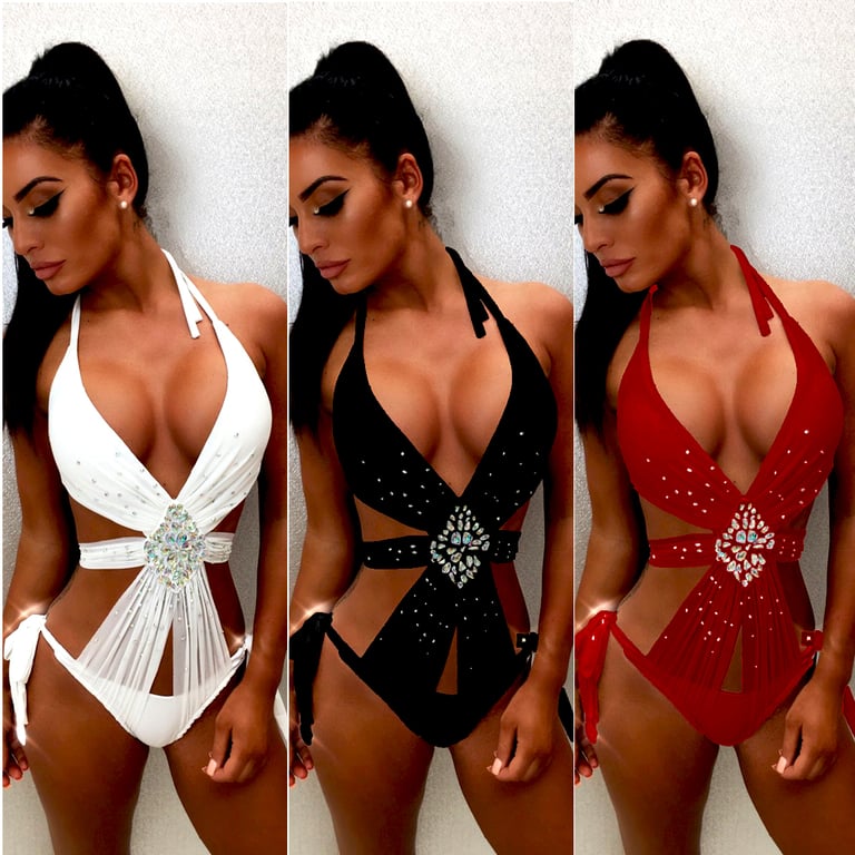 Women's Luxury Sexy One-Piece Swimsuit with Rhinestones