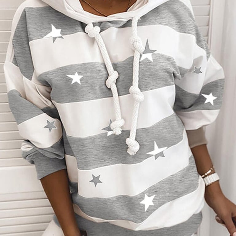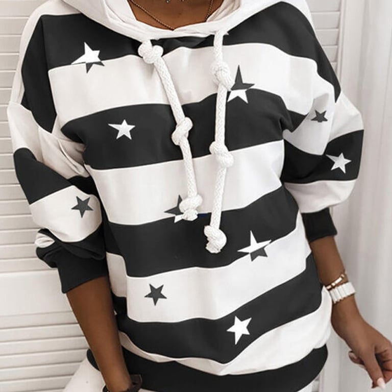 • Tags: hoodie, star print, kangaroo pocket, stripes