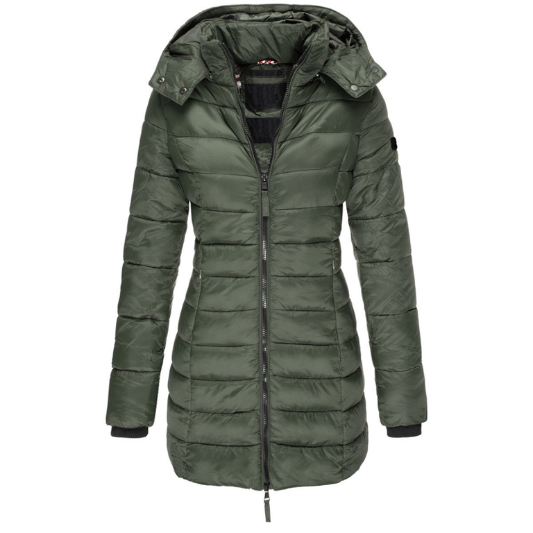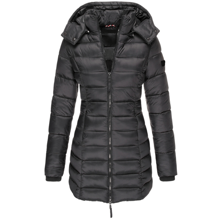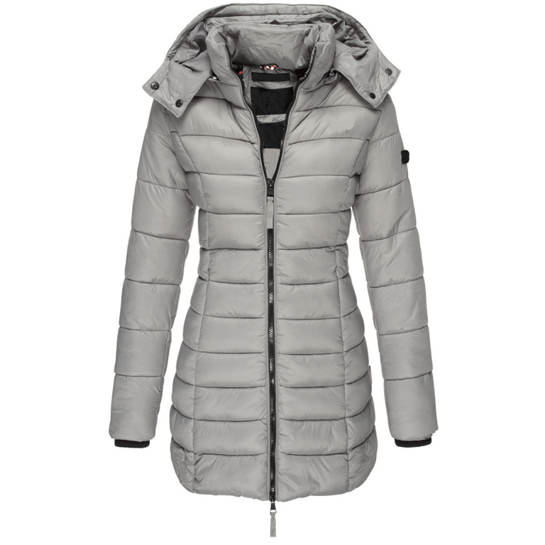 Women's luxury spring parka Mariana – collection 2025.Women's luxury spring parka Mariana – collection 2025A beautiful spring parka Mariana, which is horizontally quilted and has a modern cut. The parka features a detachable hood and a snap button closure at the front to keep the wind off your neck when you forget your scarf.