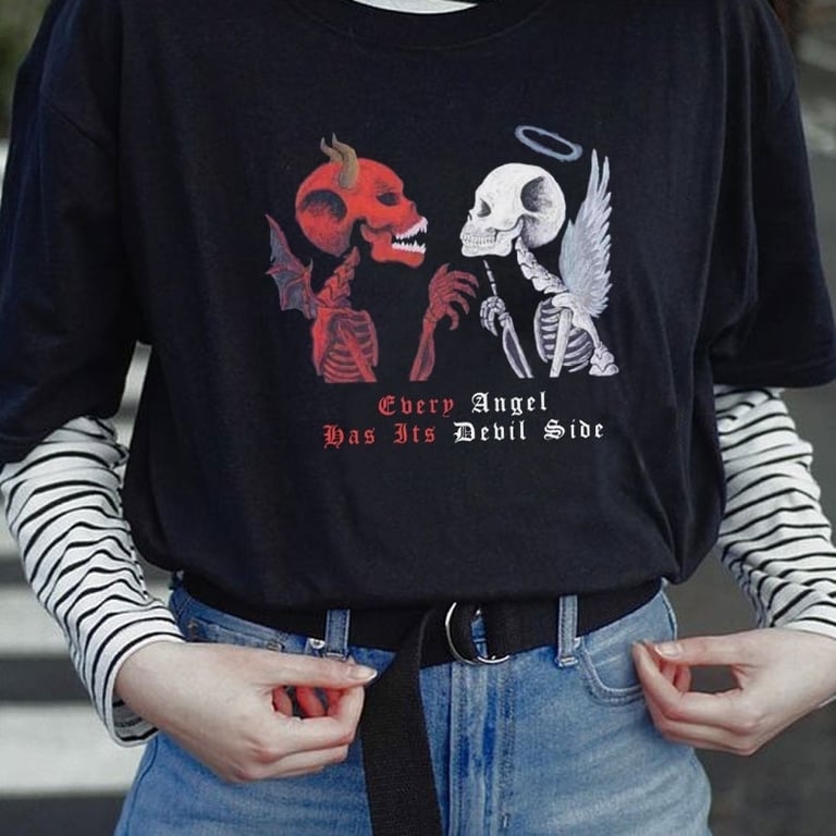 Tags: top, women's top, t-shirt, women's t-shirt, gothic, angel, devil