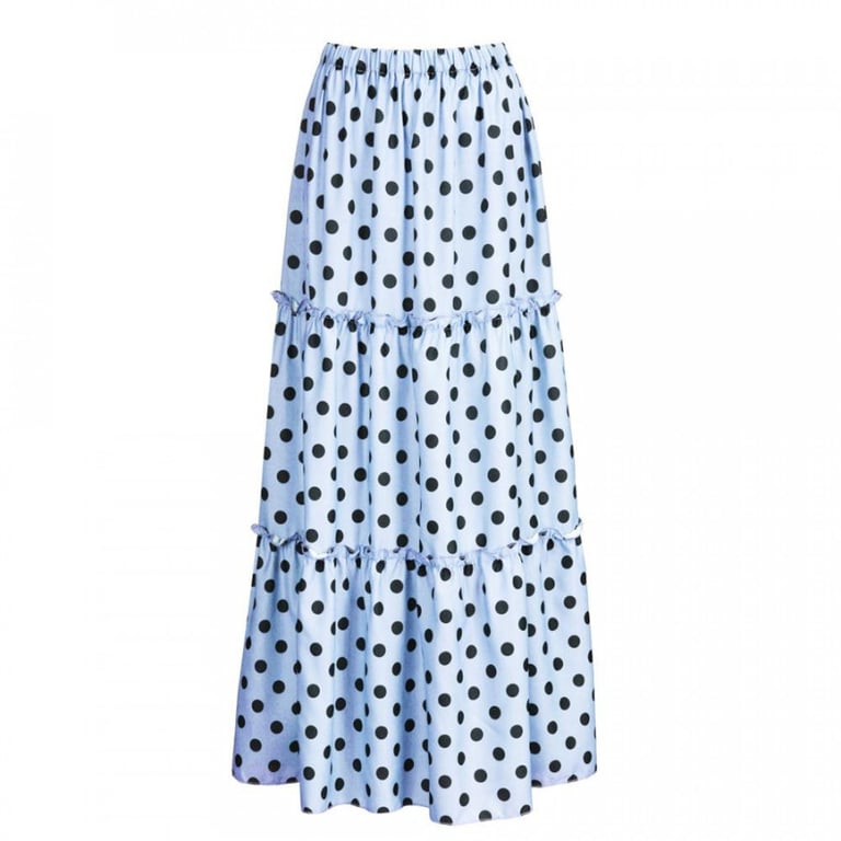 Women's long skirt with a polka dot pattern. Loose fit with an elastic waistband. Available in multiple colour options.