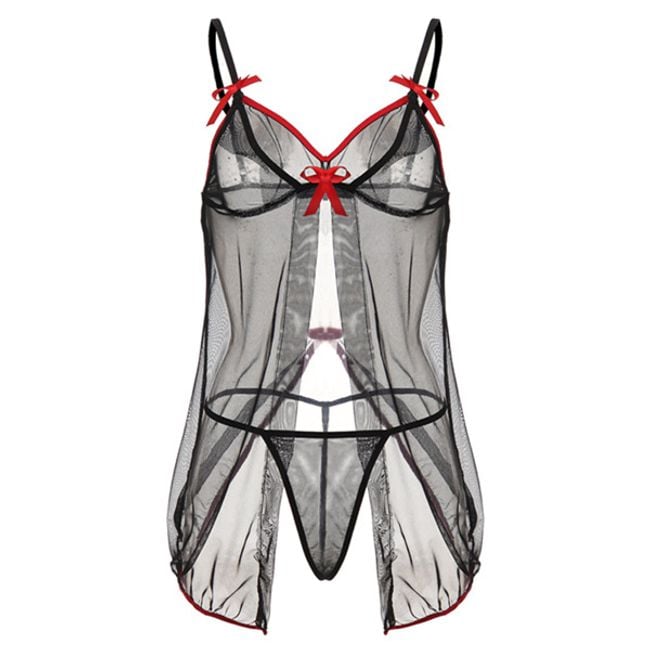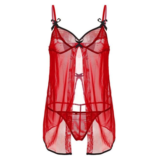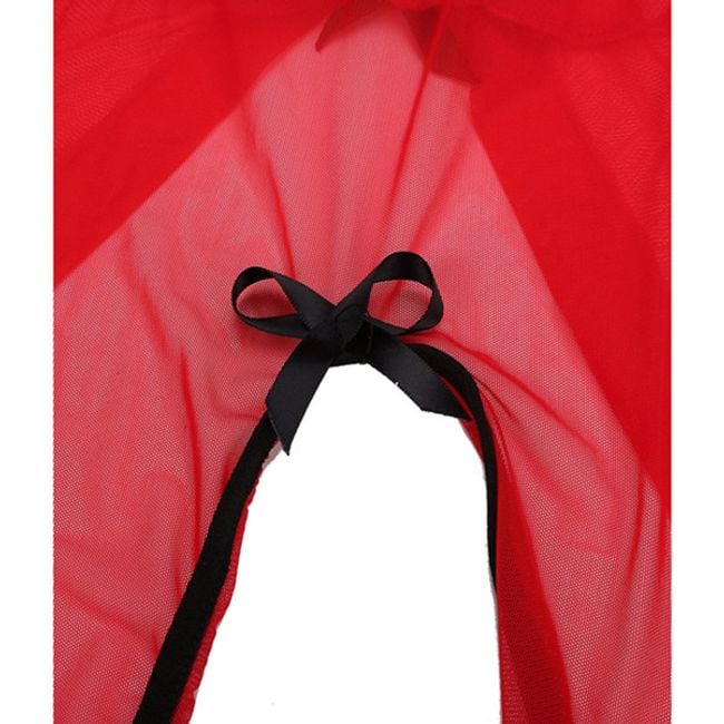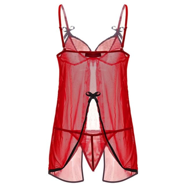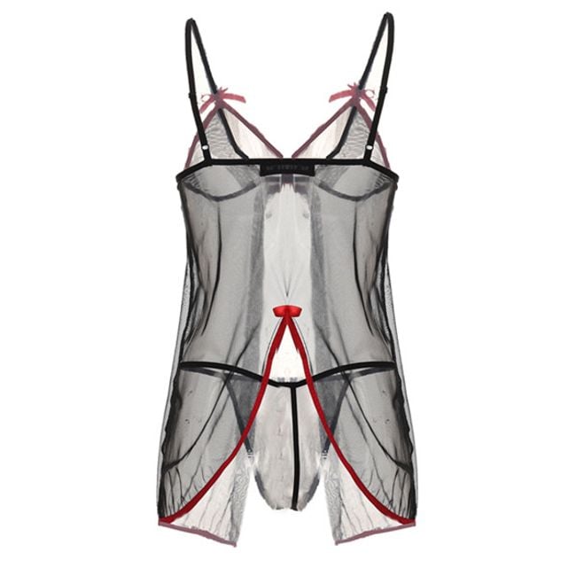 Sexy nightdress highlights the beauty of the female figure. The transparent material is light and comfortable, so you won't even feel it on you. It also includes classic thong in the same colour as the outfit. The nightdress is adorned with a cute bow. Available for purchase in 2 colour variations.