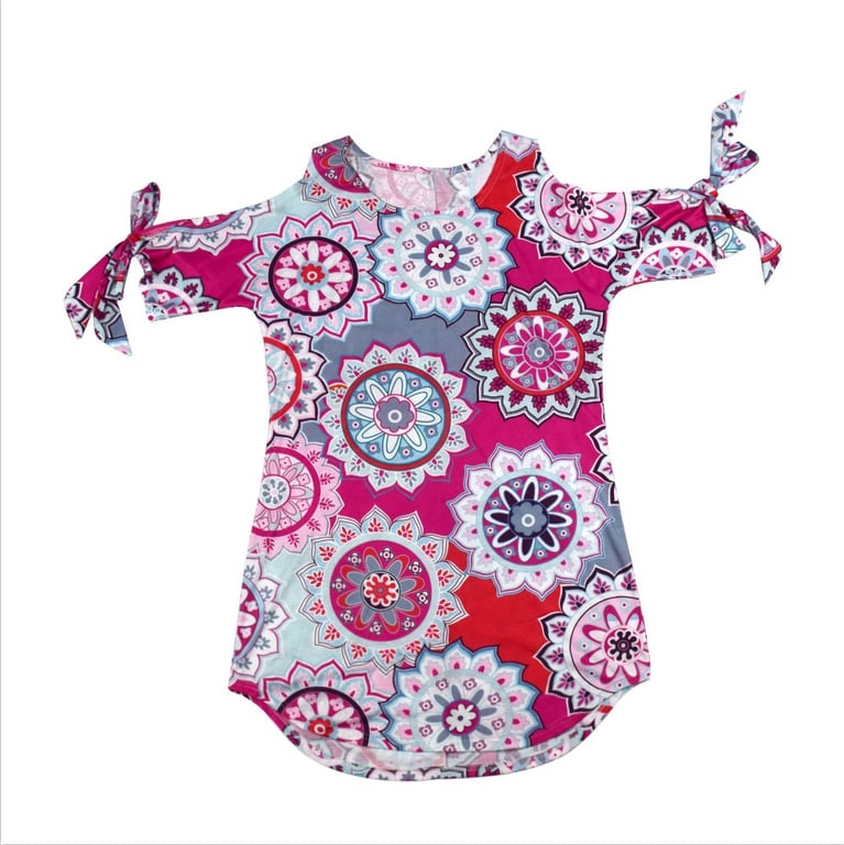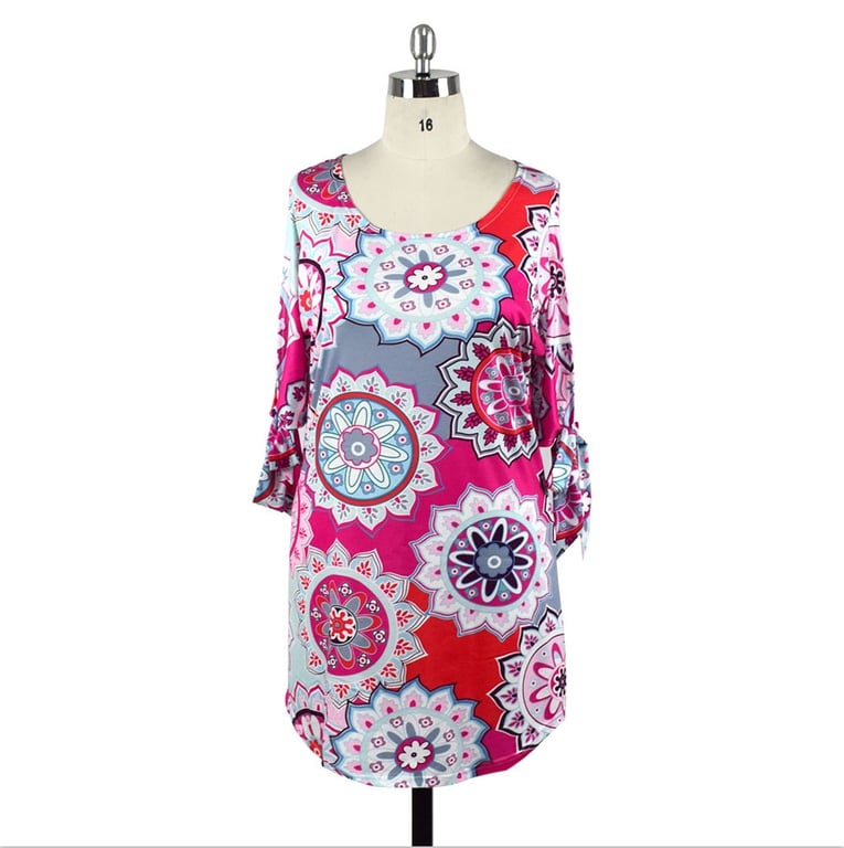 Elegant round neckline and tunic cut.