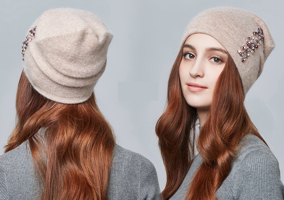 You will definitely love this very fashionable women's hat decorated with rhinestones.
