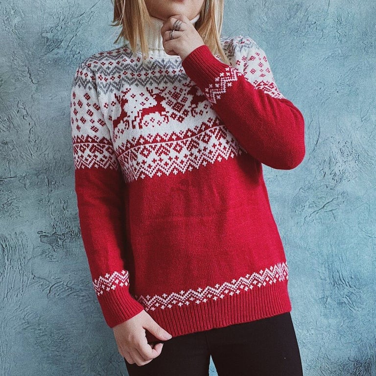 The sweater is a great choice for an outfit by the Christmas tree or for festive photoshoots.