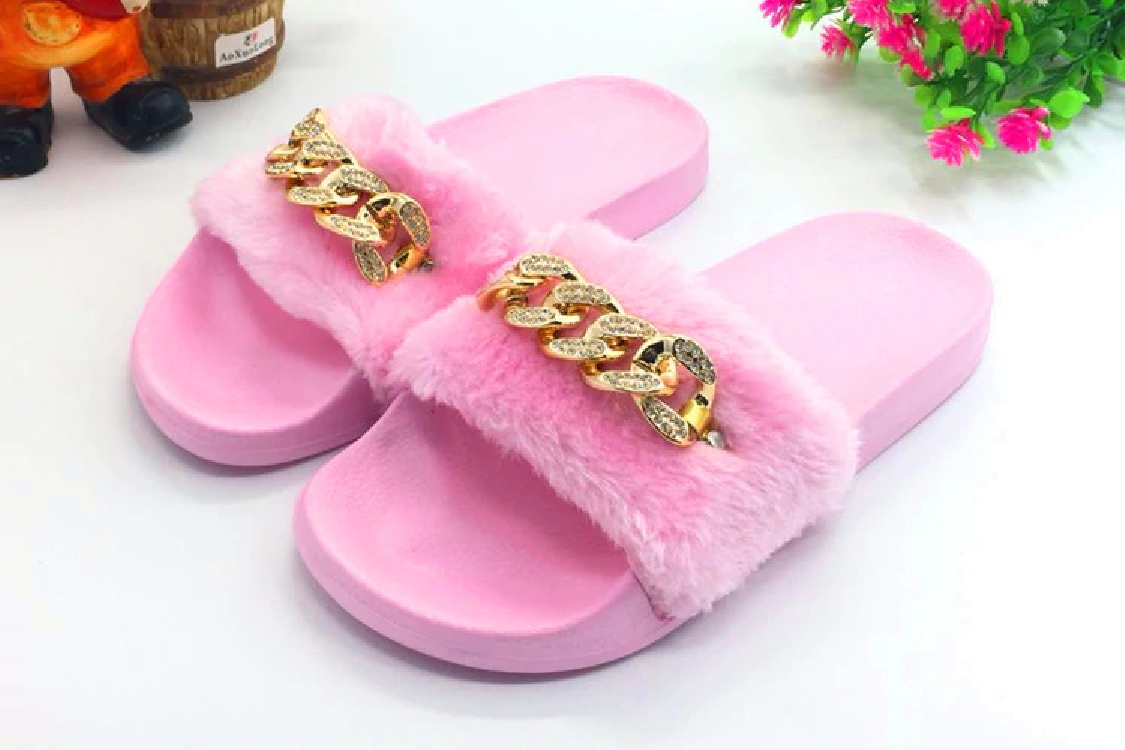 These beautiful slippers adorned with a chain are of very high quality and comfortable.