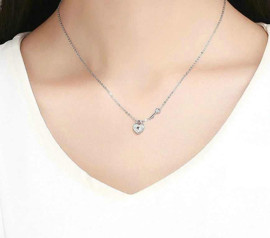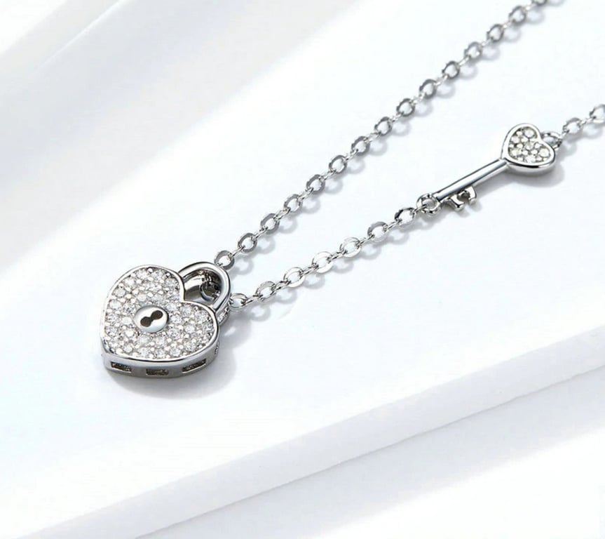 Women's necklace with heart and key