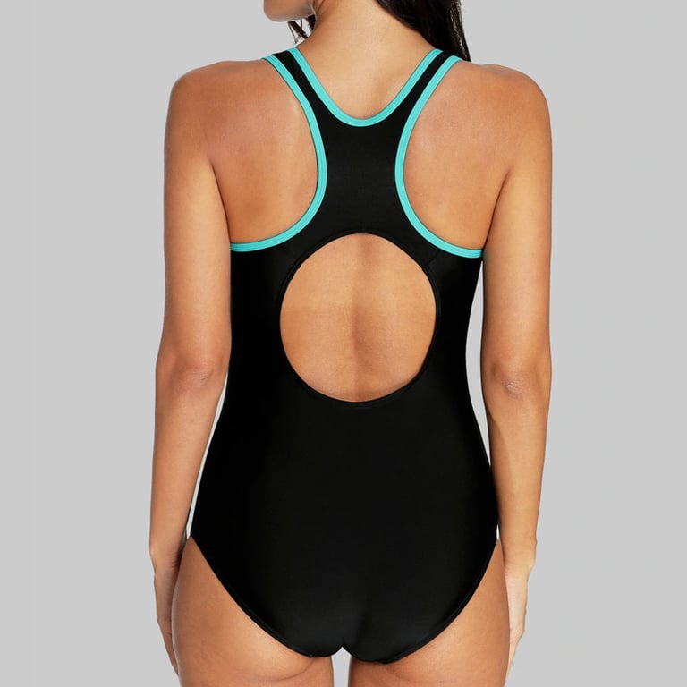 Very elegant women's one-piece swimsuit designed for both recreational and sports purposes.