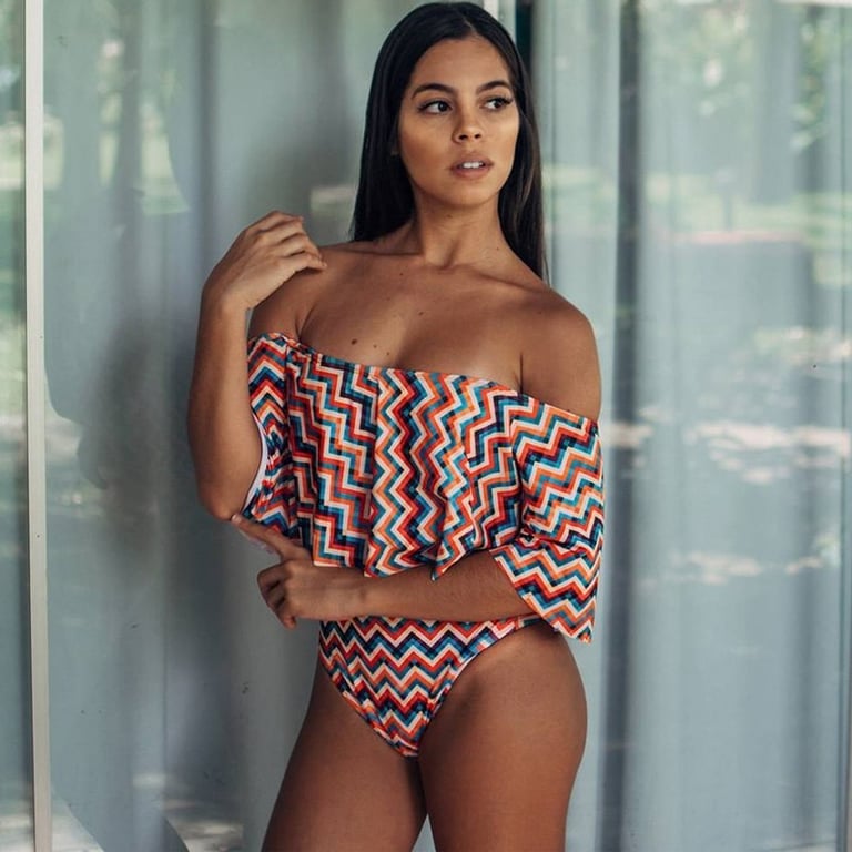 Ladies' one-piece swimsuit with ruffles Elenor