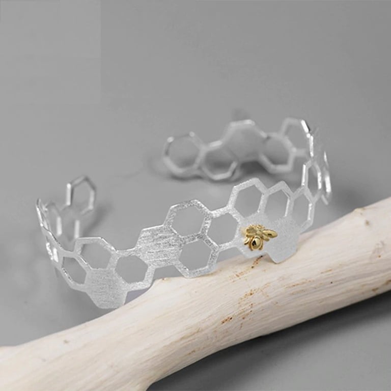 Women's Open Bangle Bee and Honeycomb
