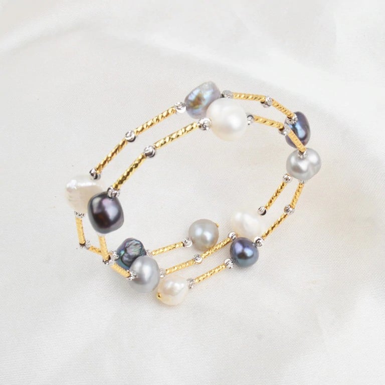 Women's Open Bracelet with Pearls