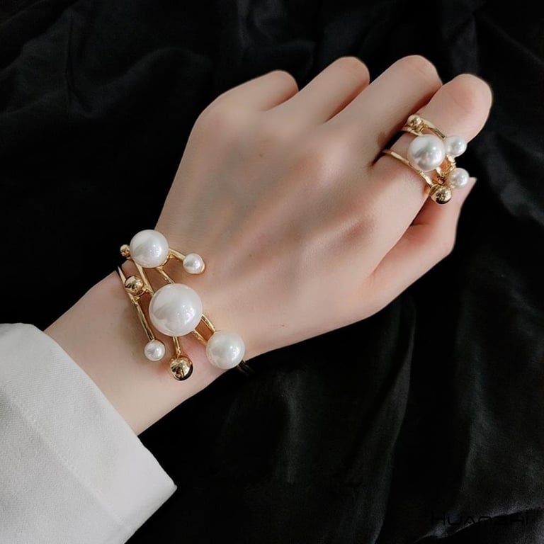 Women's Open Bracelet with Pearls