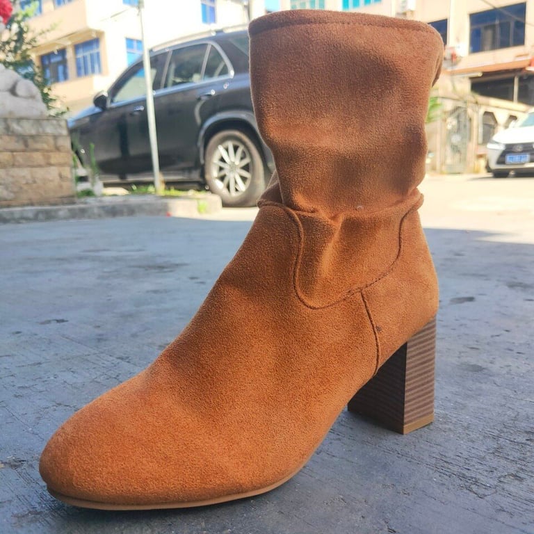 • High-heeled boots with a simple design suitable for any outfit.