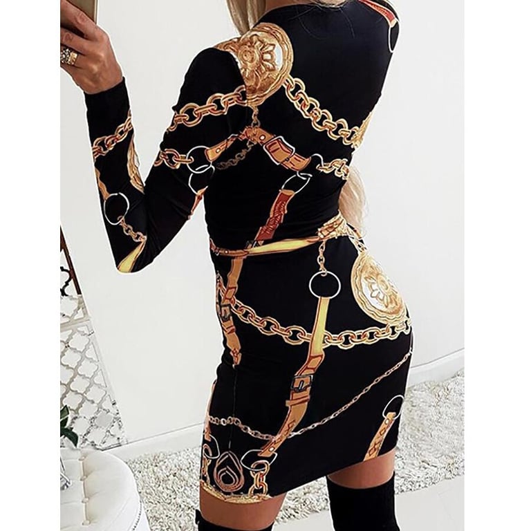 Women's elegant party dress. The dress has a fitted short cut and long sleeves. Printed with a colourful pattern.