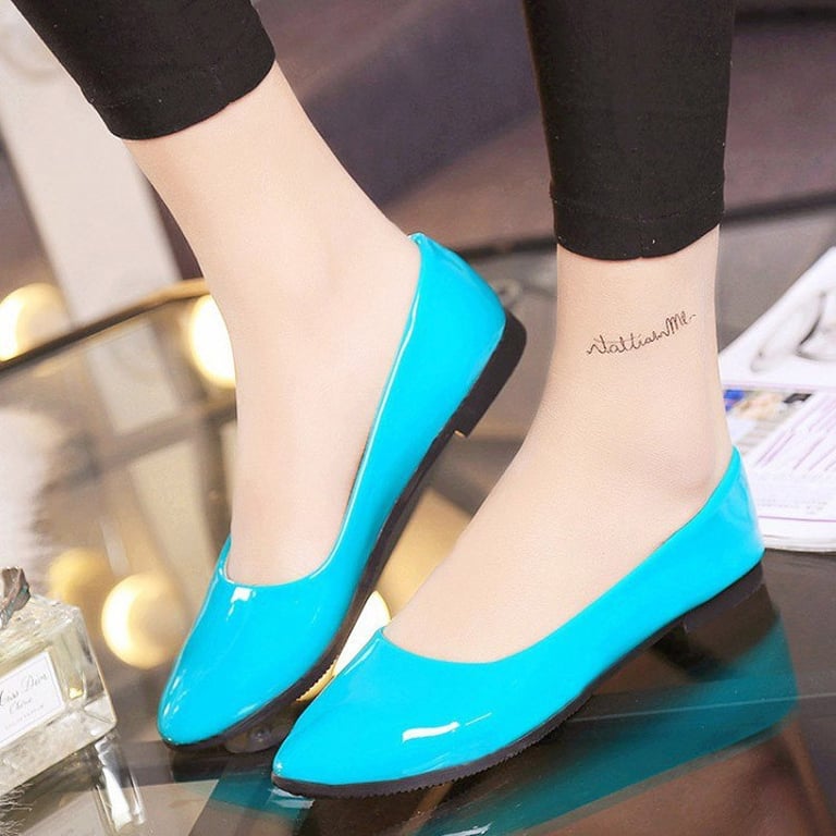 Women's ballet flats with a glossy patent finish. The ballet flats have a tapered toe and a flat sole without a heel. Available in various colour options.