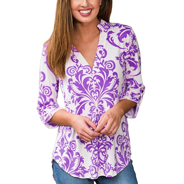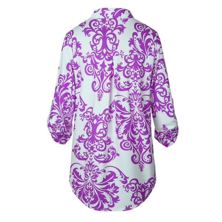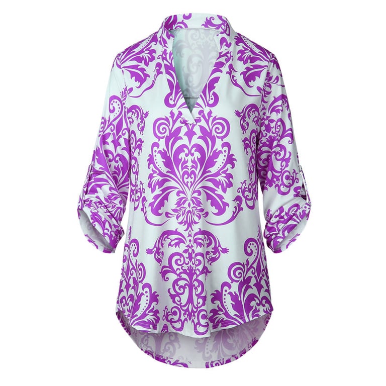 Women's blouse with a solid colour floral pattern. The blouse features a V-neck with a collar and 3/4 sleeves. Loose fit. Available in multiple colour options.