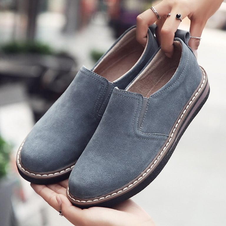 Women's loafers with a flat rubber sole. Slip-on with a round toe and a sturdy heel. Leather look. Available in multiple colours.