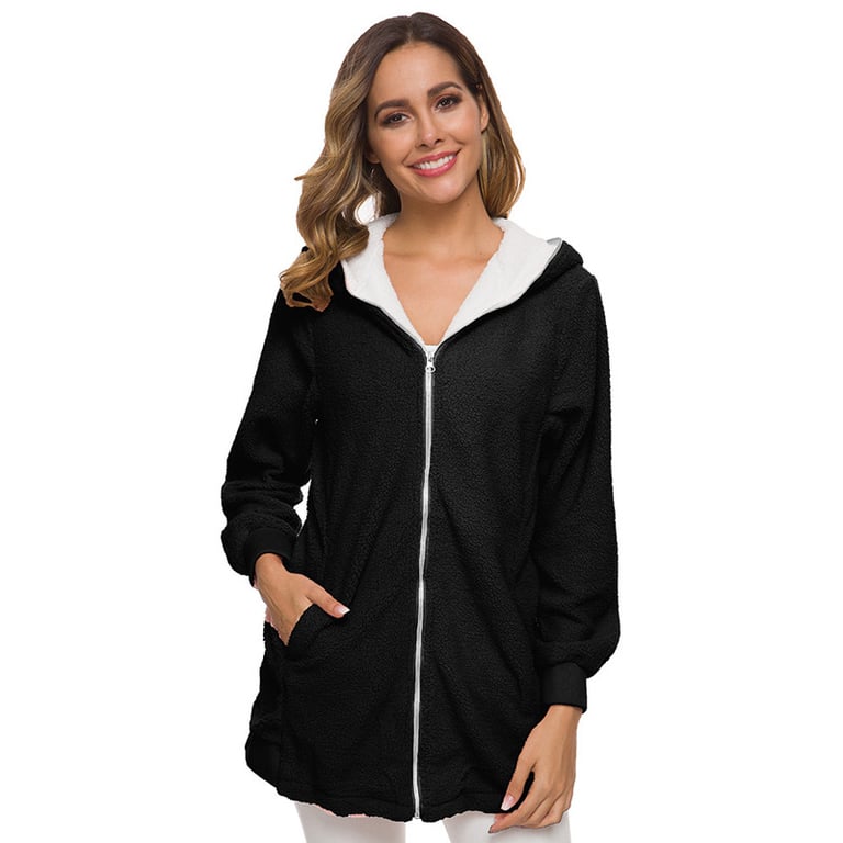 A simple hoodie with a pleasant fluffy surface. The longer cut will please any woman who does not like the cold and winter.