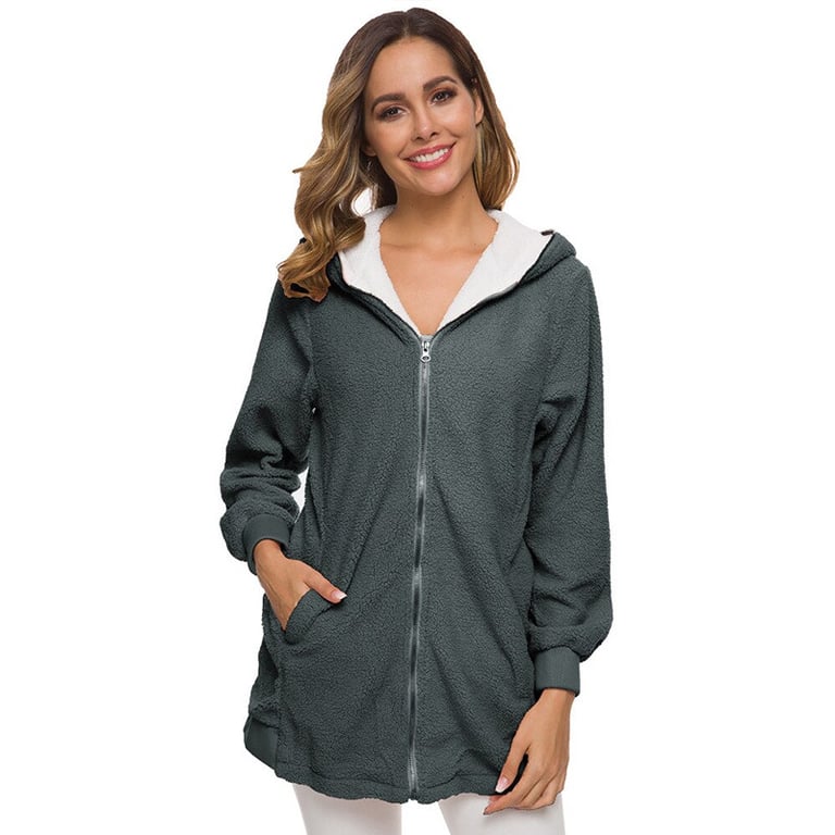 A simple hoodie with a pleasant fluffy surface. The longer cut will please any woman who does not like the cold and winter.