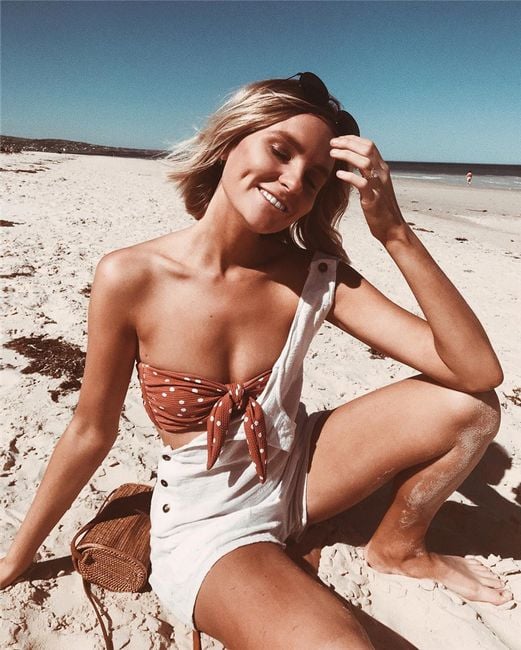 Women's two-piece swimsuit decorated with white polka dots. Available in 5 colour variants.