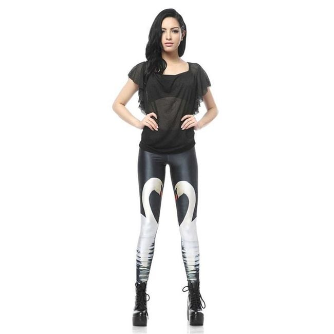 Beautiful women's leggings with a print of love-struck swans. They are original and practical at the same time. Ideal for everyday wear as well as various events. Thanks to the elastic material, they are very flexible and easily adapt to your figure. Available in three sizes, which are detailed in the product description.