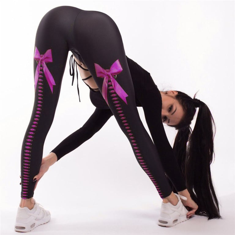 Women's long leggings with a colourful bow print on the back. Elastic material. High waistband with elastic.