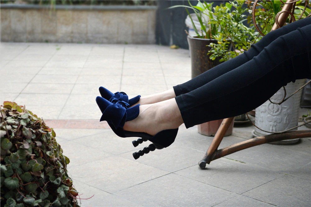 In these pumps with a bow and luxuriously crafted heel, you will look great.