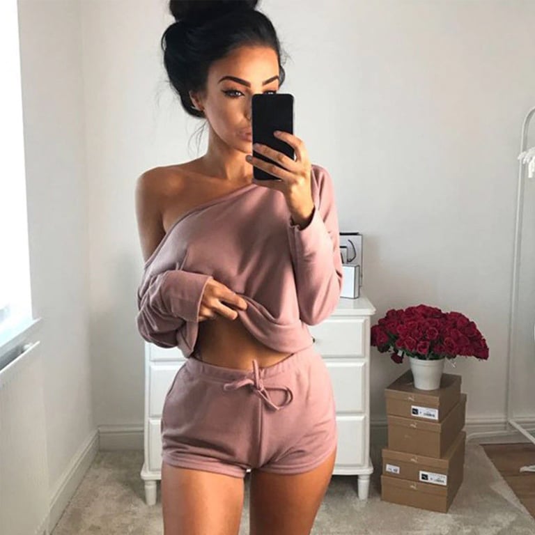 Women's pyjama set consisting of a t-shirt and shorts. The t-shirt has long sleeves and dropped shoulders, while the shorts feature an elastic waistband for adjustment. Available in two colours.
