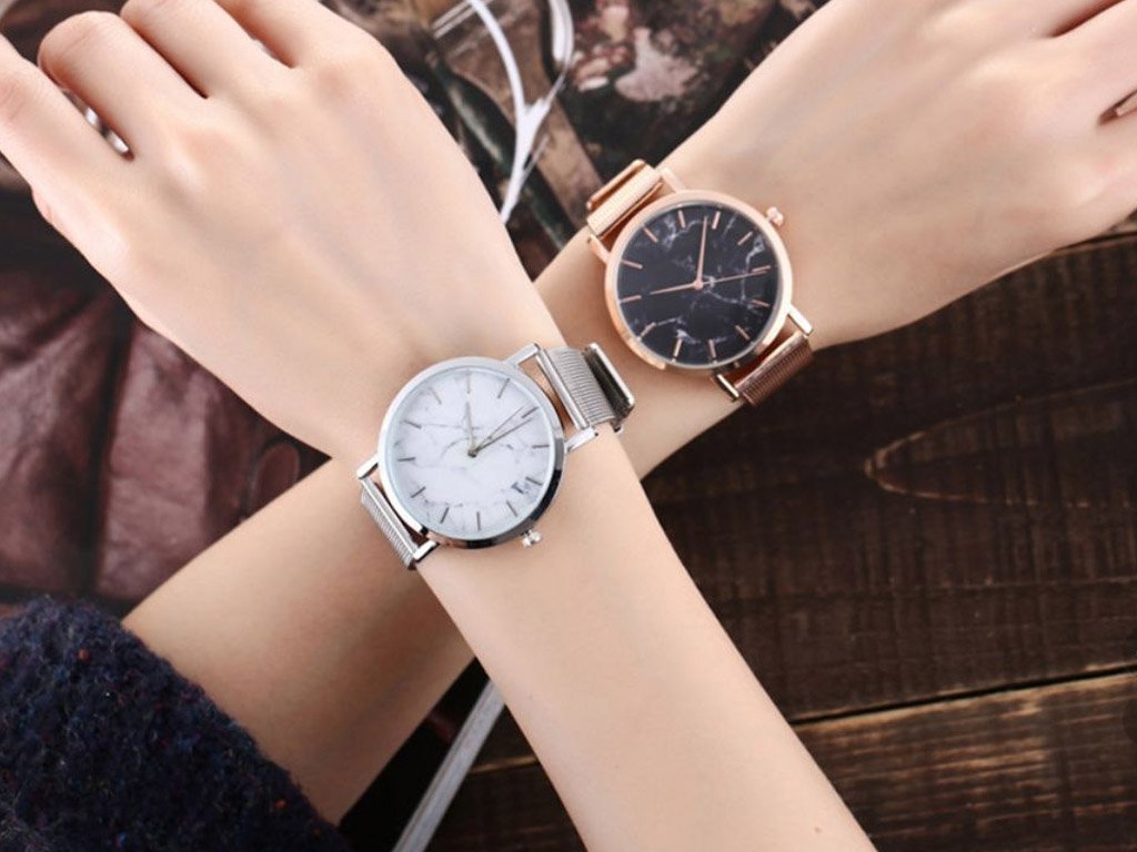 Stylish Quartz wristwatch with a marble pattern dial. Suitable for both formal and informal occasions. Available in 4 colour variants.