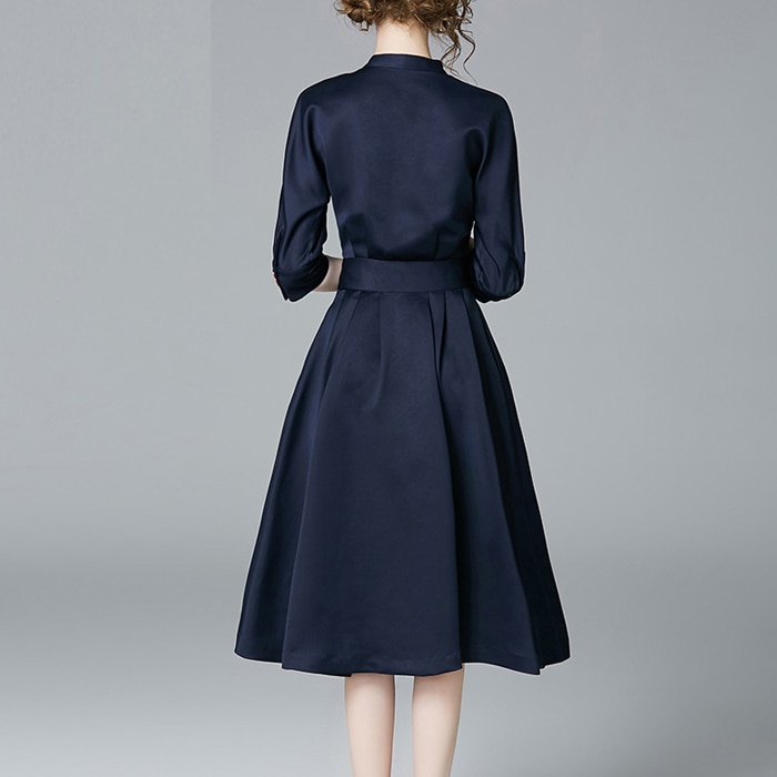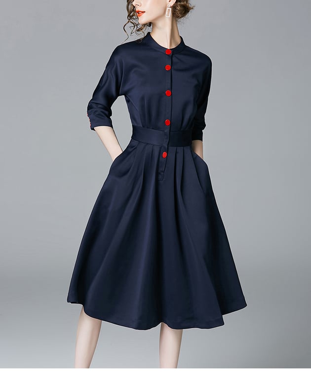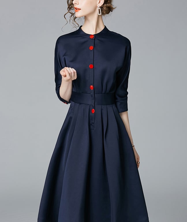 Stylish women's dress in retro style. Half sleeves and elegant round neckline.