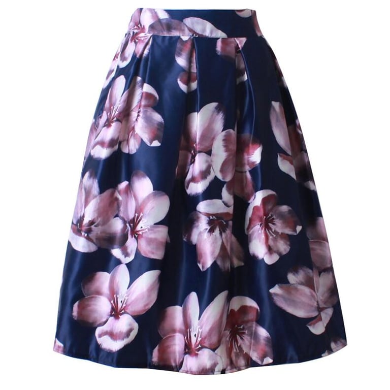 Women's retro style skirt with an elastic waistband and wide balloon cut. One size fits all. Colourful floral print. Available in multiple variants.