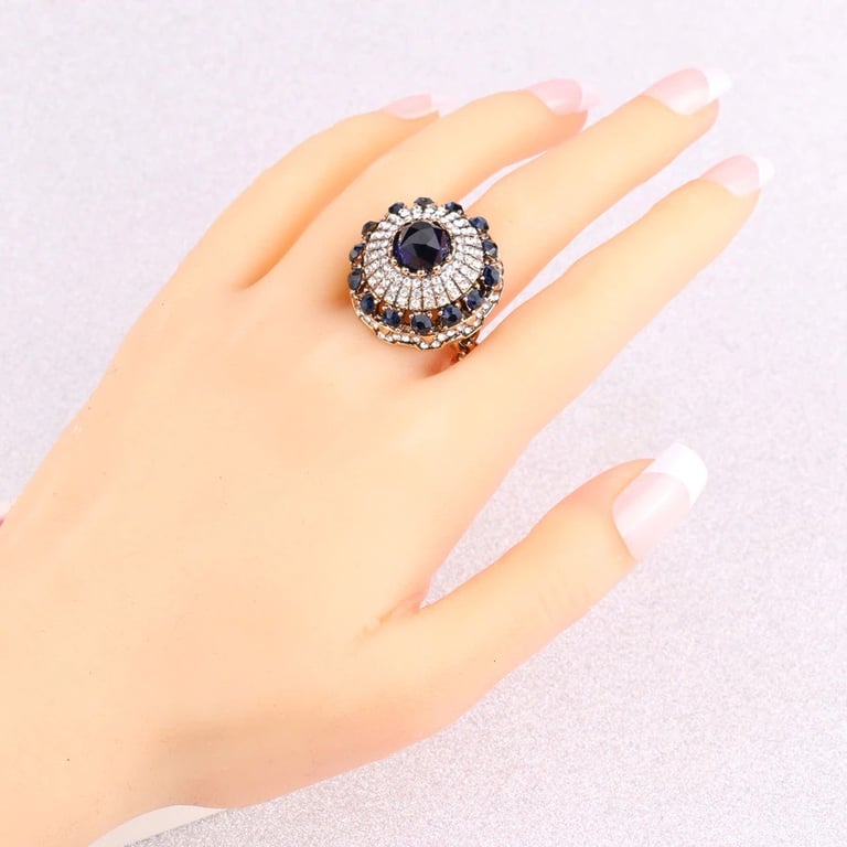Material: costume jewellery metal, crystal, imitation sapphire