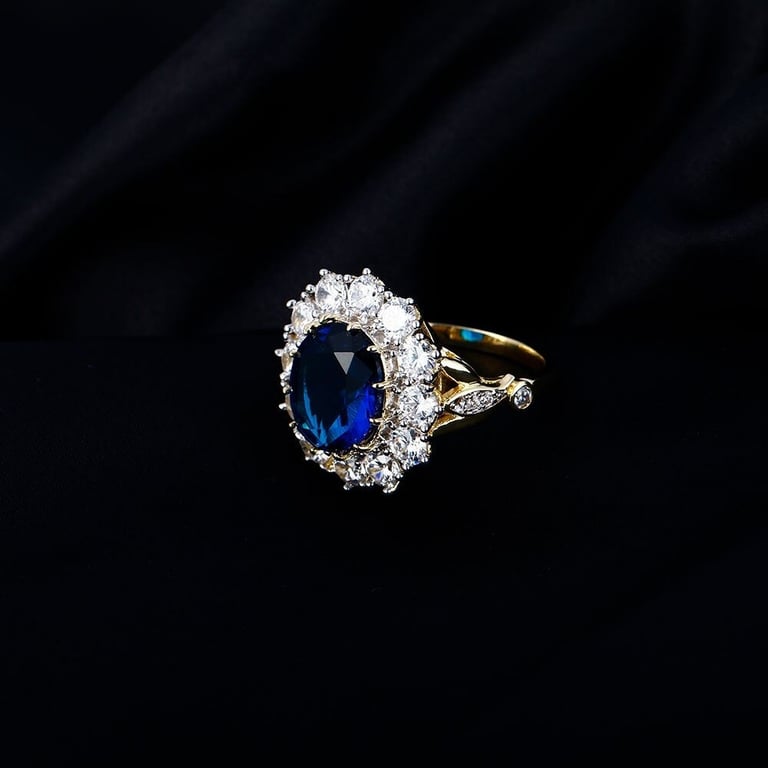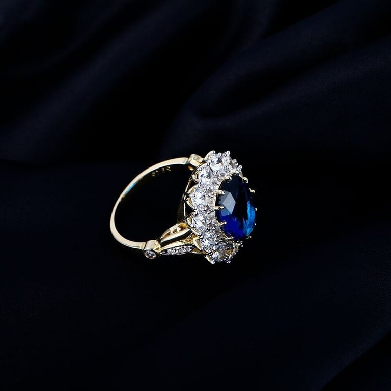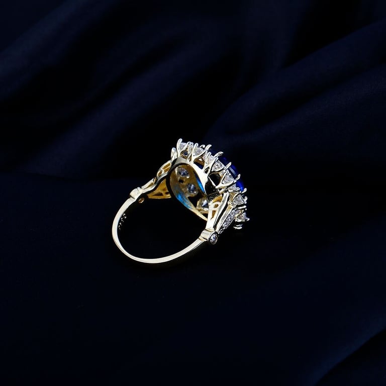 Material: costume jewellery metal, imitation sapphire, zircon