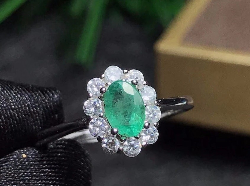 Material: costume jewellery metal, imitation emerald
