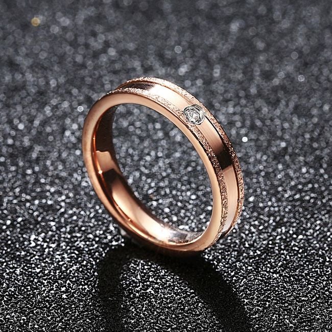 The ladies' ring features a stone in the centre surrounded by bands. The ring is luxuriously designed and available in various colours. Choose your colour and size.