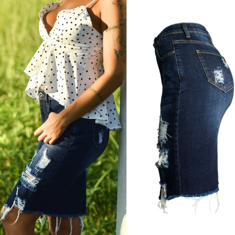 Women's Distressed Denim Skirt