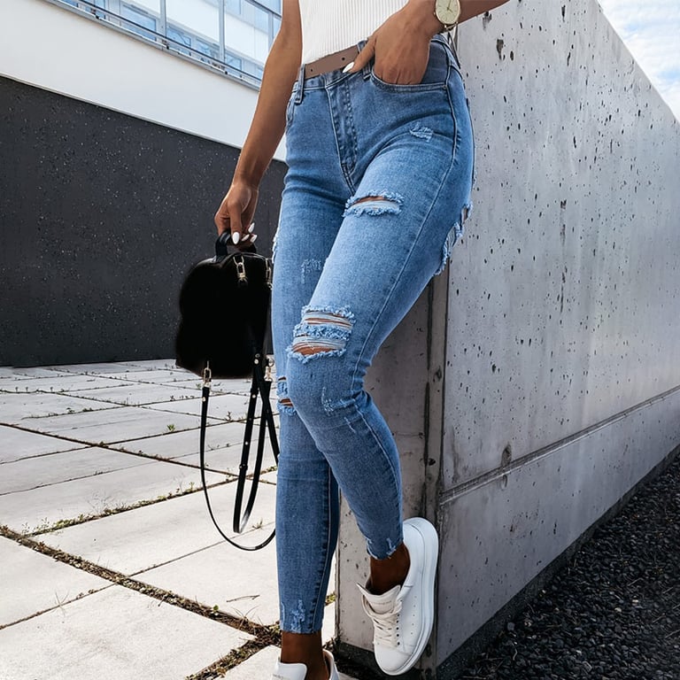 • Tags: Women's trousers, denim trousers, ripped trousers