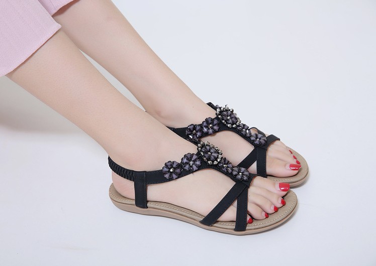In these beautiful sandals with stones and flowers, you will look adorable.