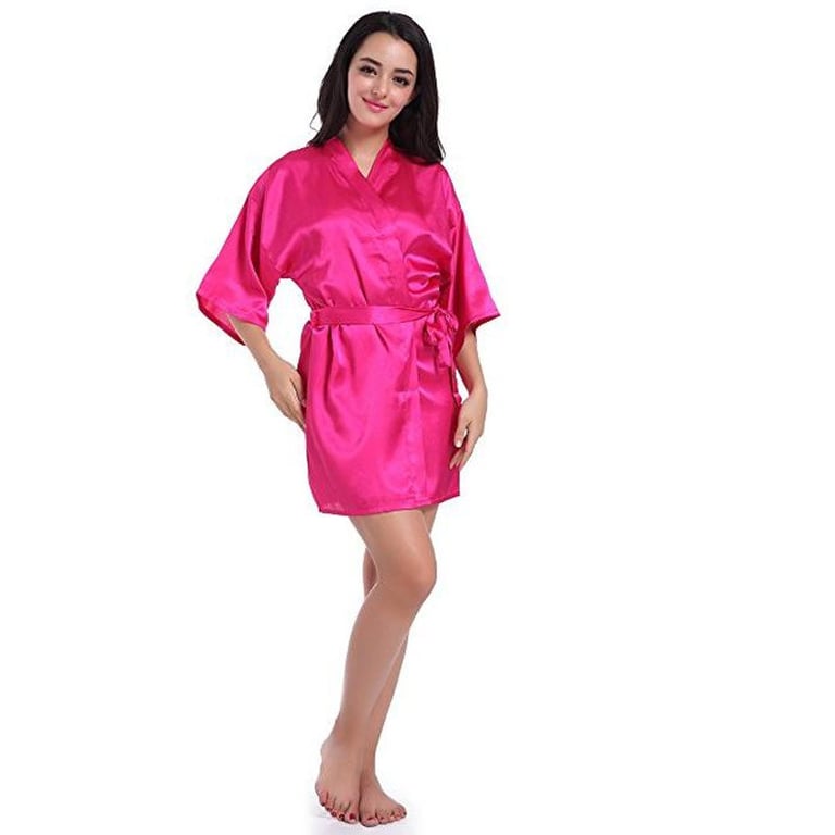 Women's short robe in elegant satin design. Smooth shiny material. Pleasant to the body. Wrap-around style with a tie at the waist. Available in many colour options.