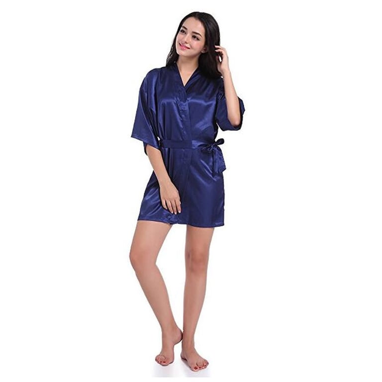 Women's short robe in elegant satin design. Smooth shiny material. Pleasant to the body. Wrap-around style with a tie at the waist. Available in many colour options.