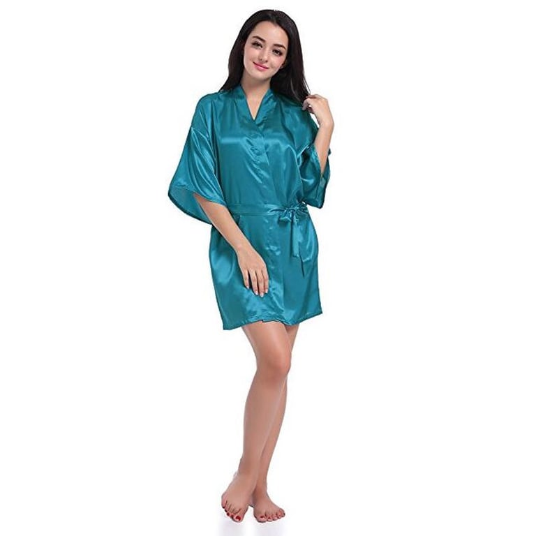 Women's short robe in elegant satin design. Smooth shiny material. Pleasant to the body. Wrap-around style with a tie at the waist. Available in many colour options.