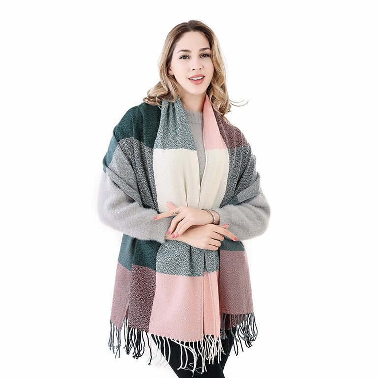 Women's large fringed scarf. Colourful checked pattern. Dimensions 60×200 cm. Available in multiple variants.