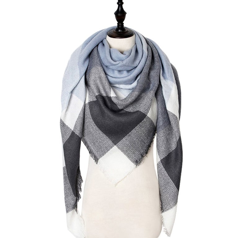 Women's scarf with a colourful checked pattern. Fringed edge. Dimensions 140x140x210 cm. Available in multiple variants.