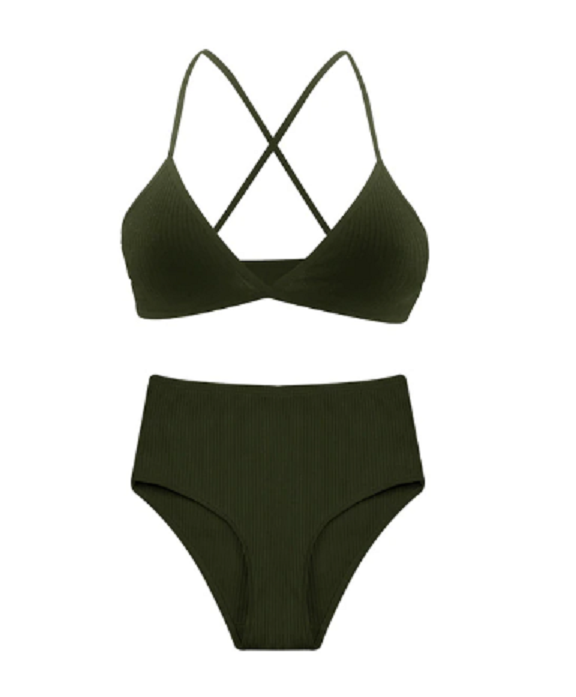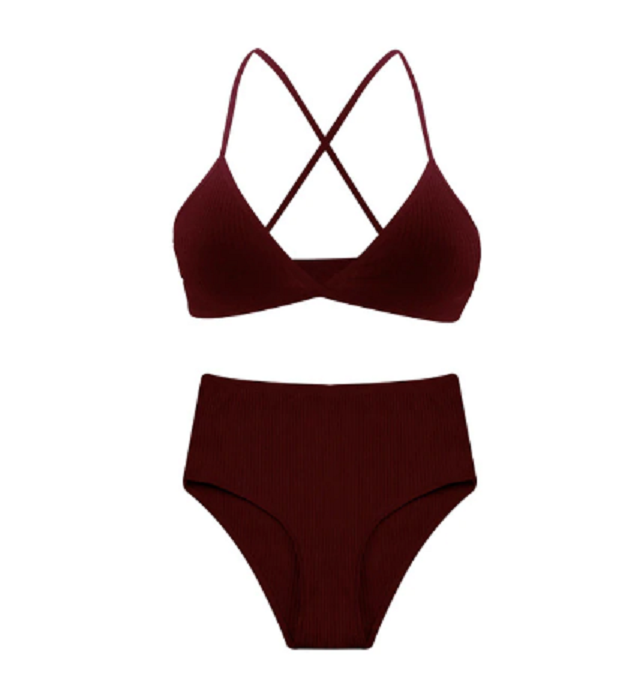 The bra features crossed straps and the knickers are designed for comfort.