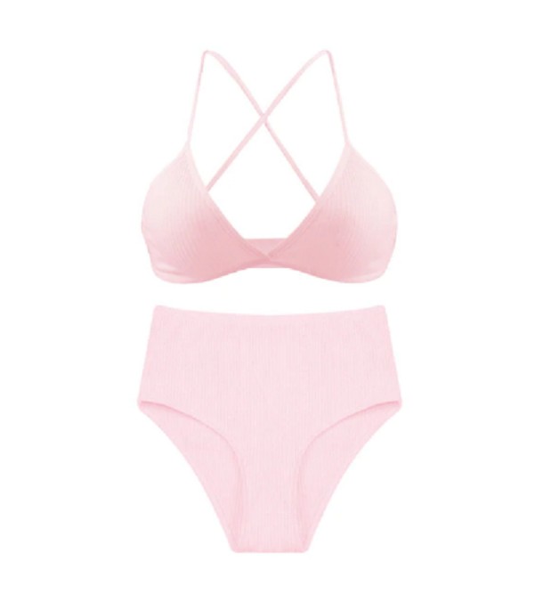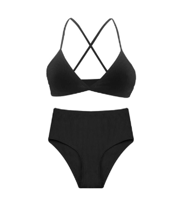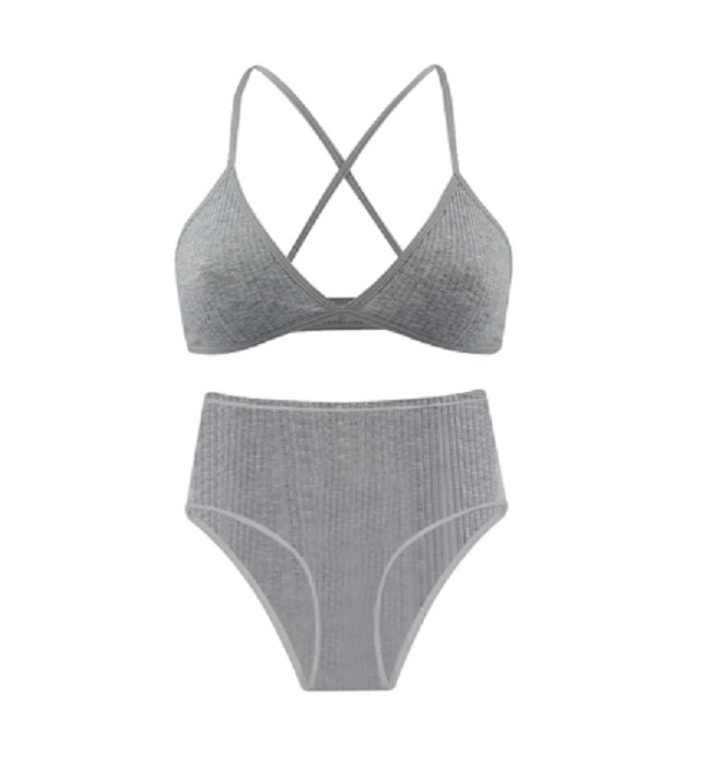 The bra features crossed straps and the knickers are designed for comfort.