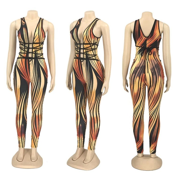 Women's sexy jumpsuit with a deep neckline
