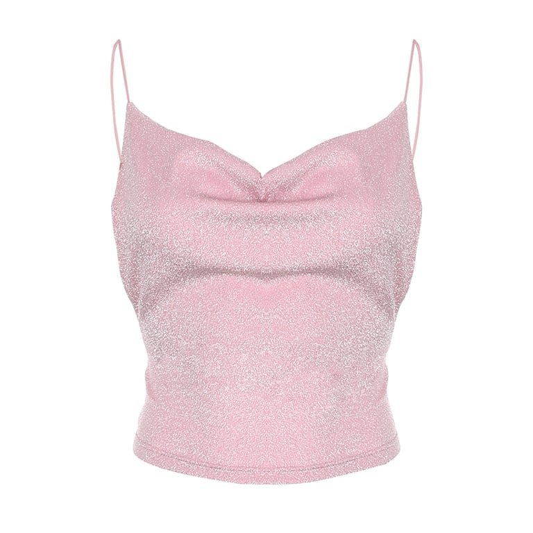 The tank top is very sexy, thanks to the completely exposed back and deep neckline. We offer the tank top in black and pink. It also has a slight shimmer.
